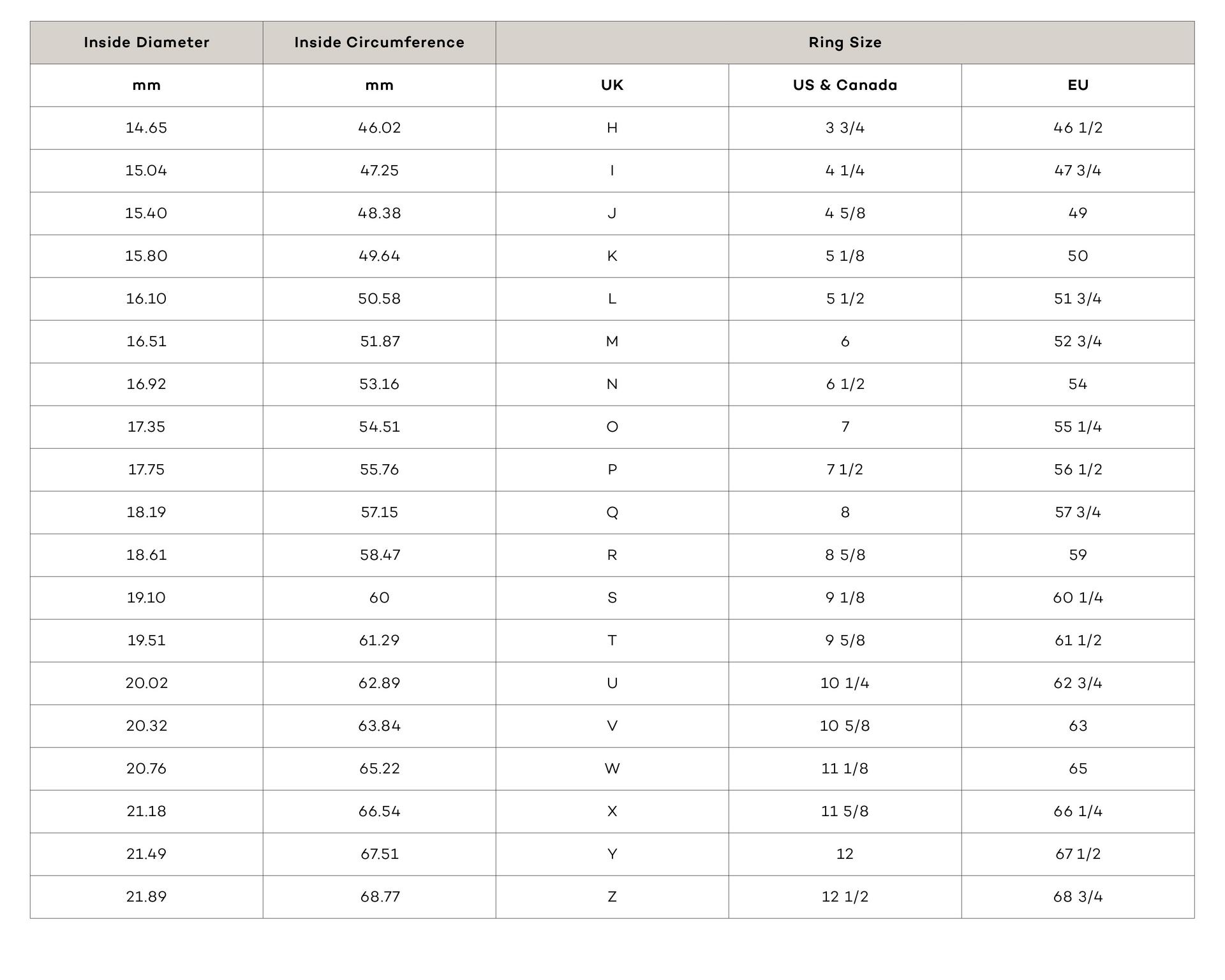 Ring Size Chart Find Your Ring Size In Letters Shiels